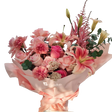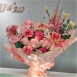 Barbie Bouquet is made of carnation pink, astilbe pink, quick sand, oriental pink lilies, revical rose and cenerea leaves. ***We fully depend on the Floral Farms all around the World. If any flower is not available in the order, we will replace it with identically colored flowers, to keep same style and color combination.