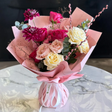 Doll bouquet is made of Candle light, quick sand, madame cereize, pussy wellow pink and Dhalia maldini. ***We fully depend on the Floral Farms all around the World. If any flower is not available in the order, we will replace it with identically colored flowers, to keep same style and color combination.