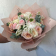 Elegance bouquet is made of white syringa, wuick sand, atena rose, cenerea, ranunculus pon pon pink and pink bombastic. ***We fully depend on the Floral Farms all around the World. If any flower is not available in the order, we will replace it with identically colored flowers, to keep same style and color combination.