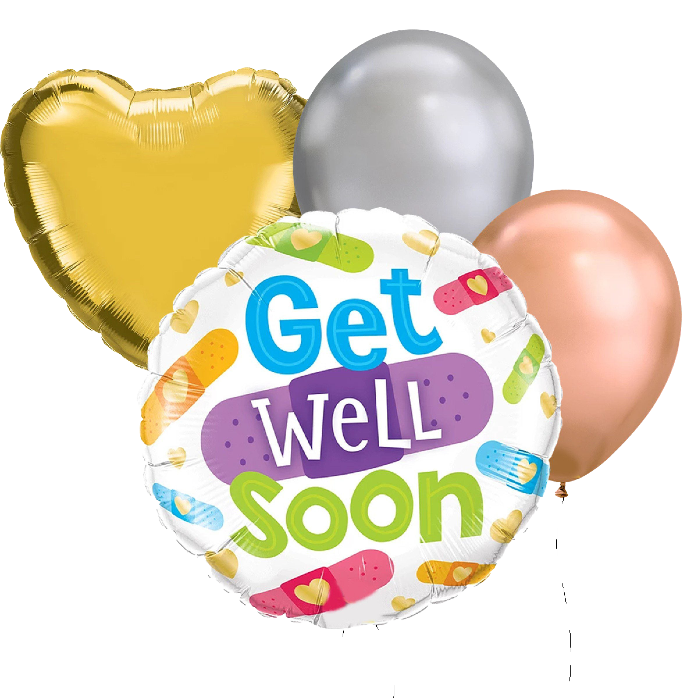 Foil and Latex Heart and Get well Soon Balloon Bouquet