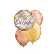 MARBLE PINK HAPPY BIRTHDAY FOIL BALLOON (1) + ROSE GOLD RUBBER BALLOON (2) + GOLD RUBBER BALLOON (1)