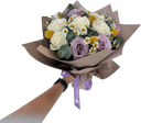 Purple Haze Bouquet is made of purple haze roses, haya blanca, craspidia yellow, camomille and Cenerea. ***We fully depend on the Floral Farms all around the World. If any flower is not available in the order, we will replace it with identically colored flowers, to keep same style and color combination.
